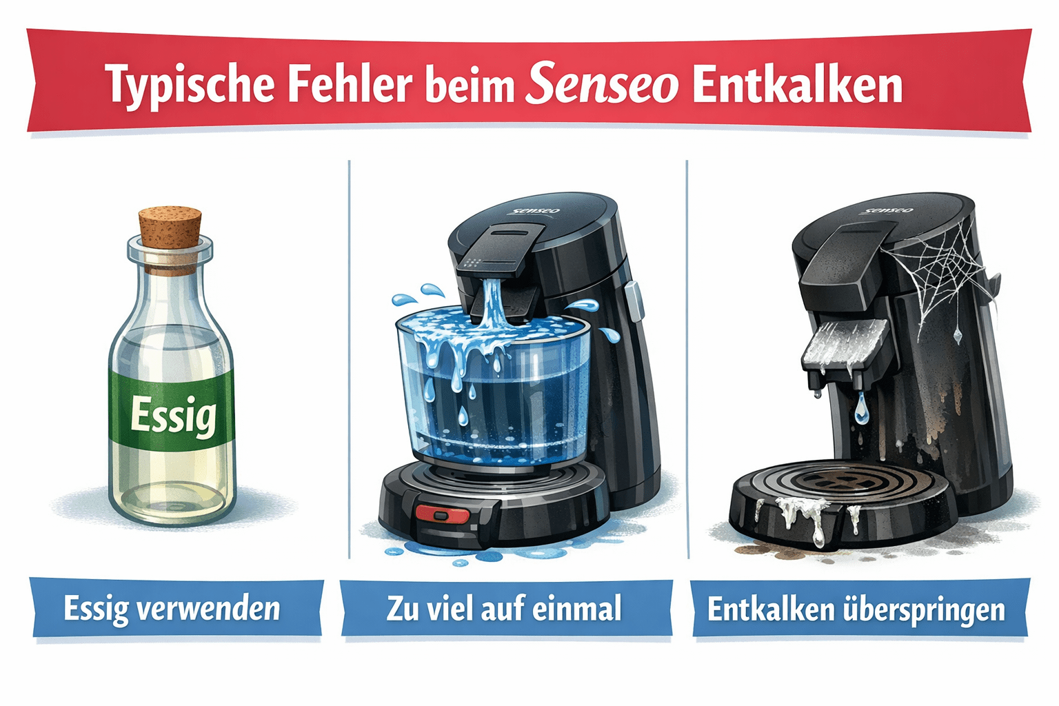 Im Internet finden sich viele Anleitungen, die beschreiben wie du eine Philips Senseo entkalken kannst. Leider wird hier meist zu diversen Hausmittel geraten, die der Maschine längerfristig mehr Schaden zufügen als zur effektiven Reinigung beitragen.
